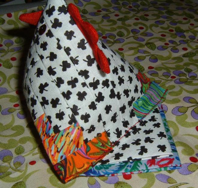 My chicken, “Lucky Stripper,” will be traveling across the Atlantic some time this week. It was made by Textile Dreamer. I’m so lucky to have such an exotic chicken for a pincushion.