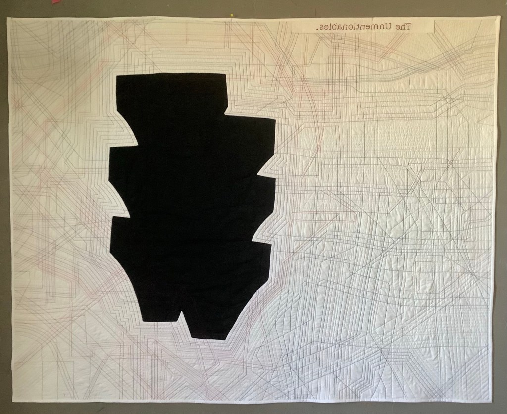 This is the second in a series of quilts, The Unmentionables. My mother always called our underwear “unmentionables.” Do you see the unmentionables?
