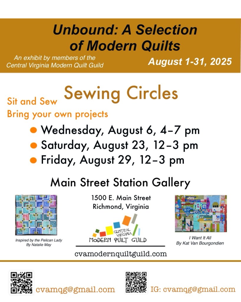 Join our guild’s Sit and Sews at the Richmond Main Street Gallery. It’s free. Bring a project or someone will share with you.