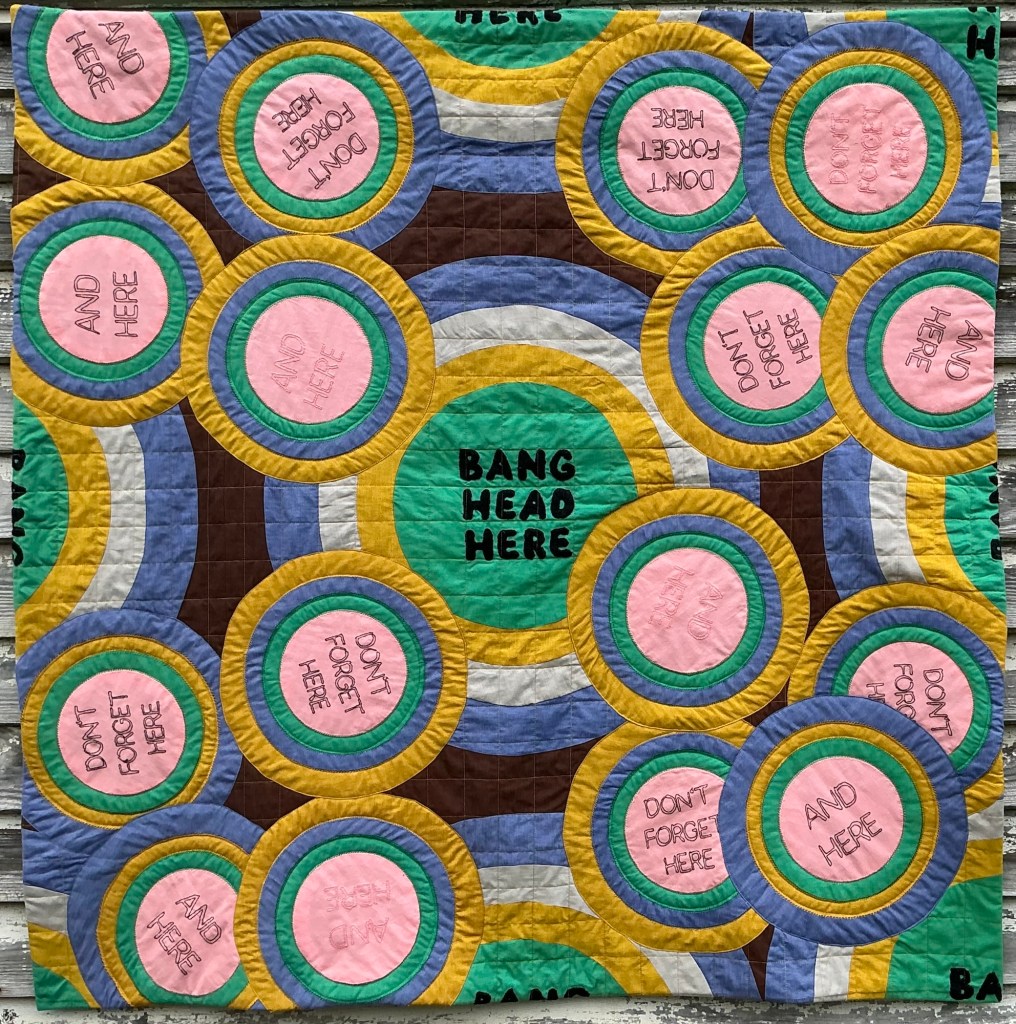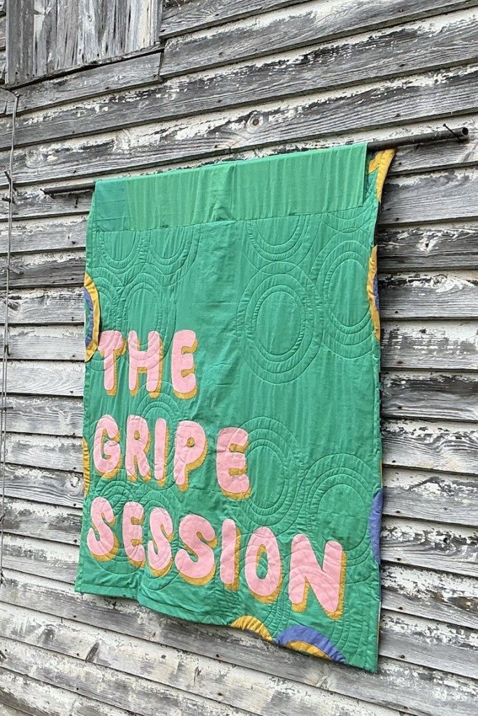 The Gripe Session began as banter among friends on one of those days when everything seemed to go wrong. “Bang Head Here” became both instruction and release—stitched again and again. It’s a vent and a Valentine to persistence: proof that when all you can do is bang your head, you might as well make it soft.