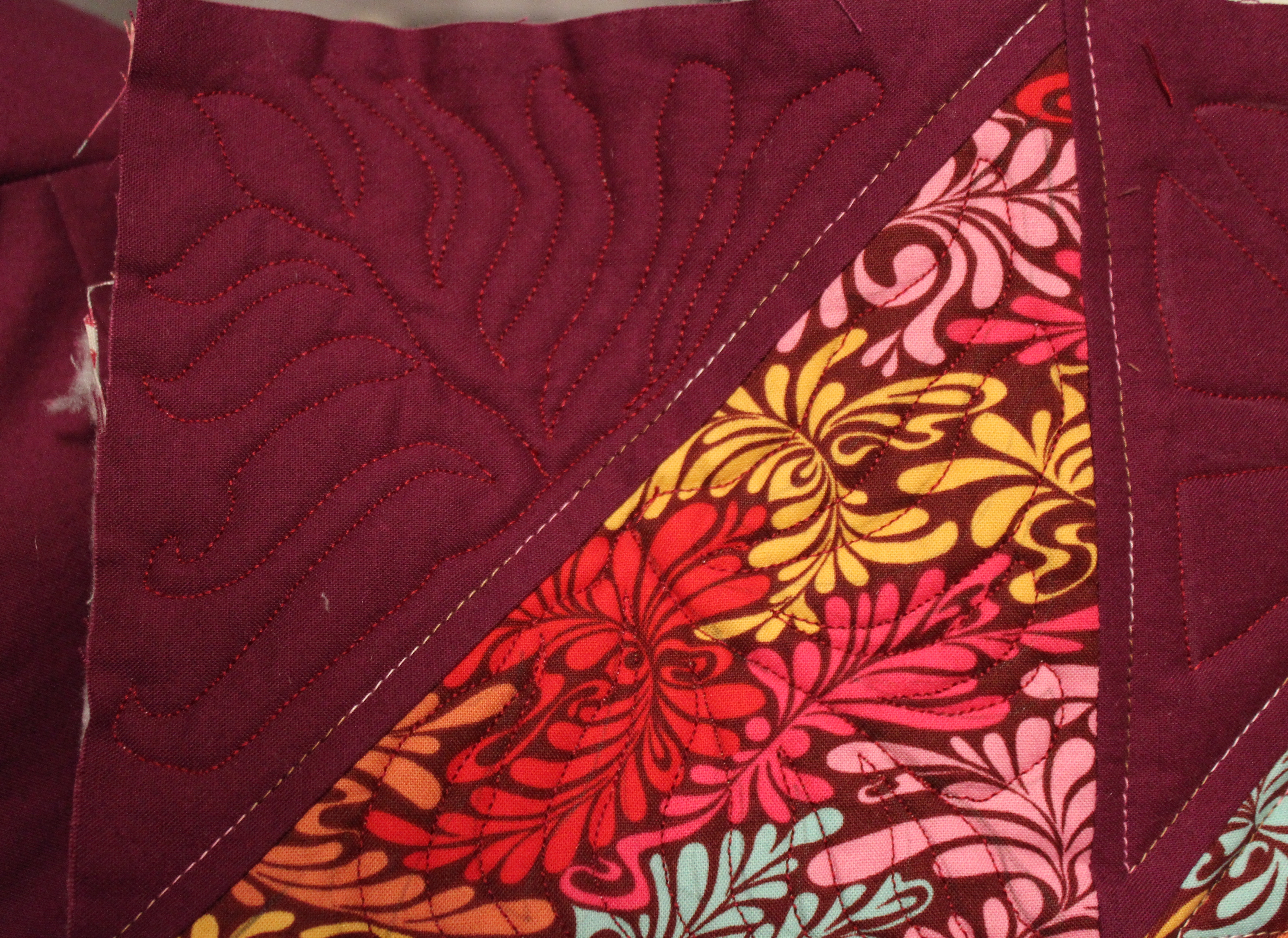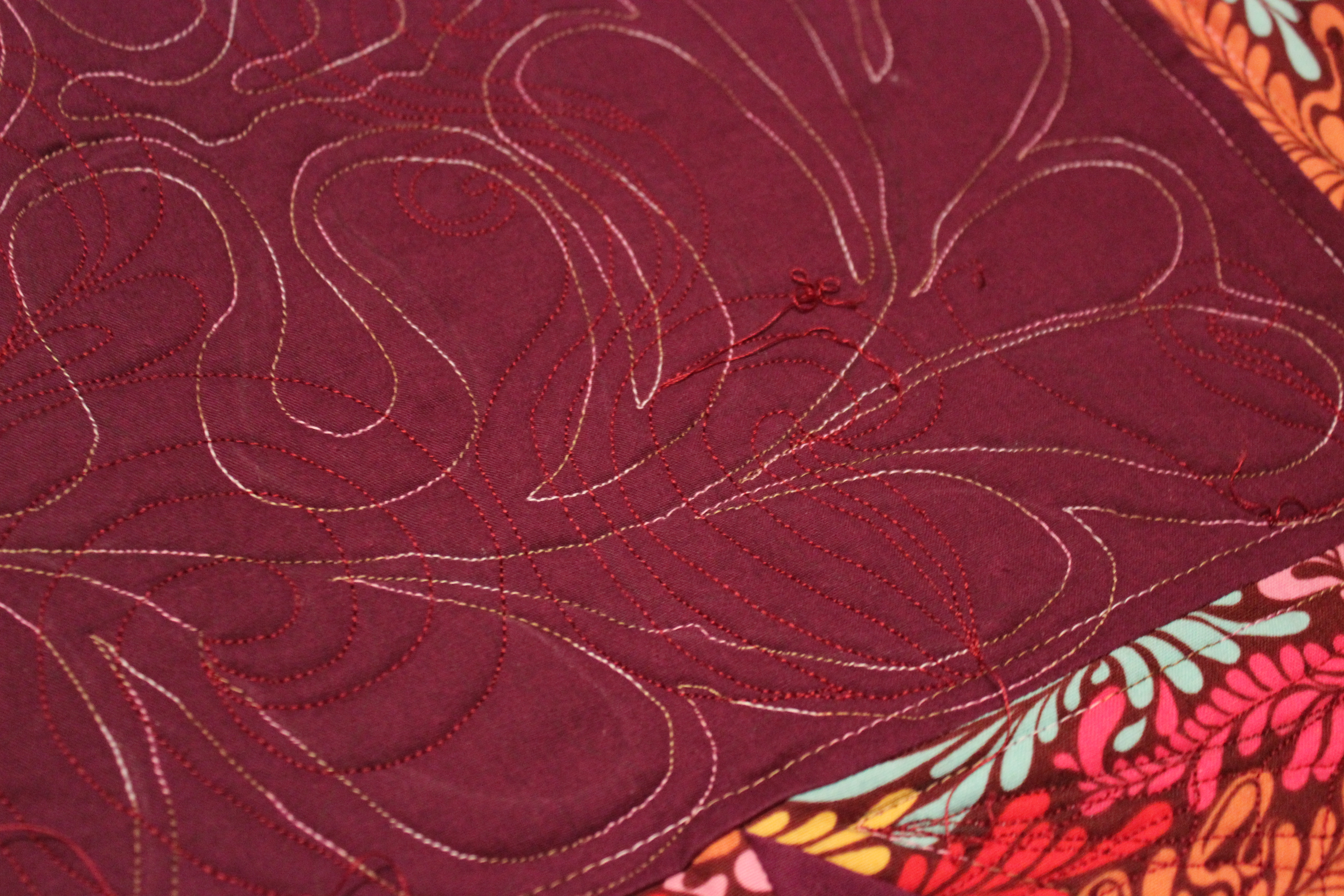 On the back of the quilt I used a variety of Marsala-inspired fabrics as well. The quilting really shows up on the back.