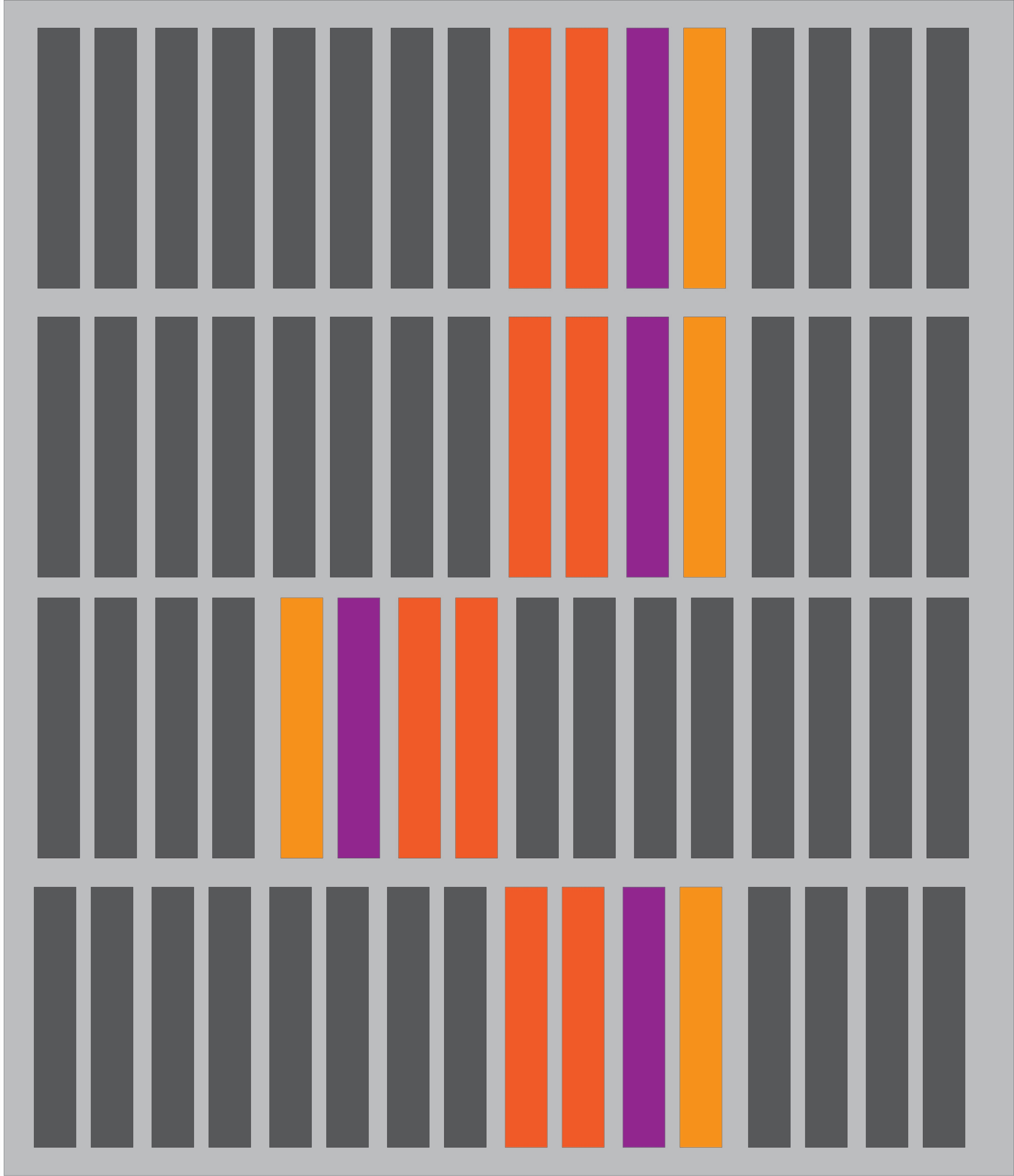 Adobe Illustrator allows me to set the ratio between the artboard grid and the actual size of the pattern pieces. That helps me create pieces that I can translate into actual measurements for a quilt. To do that I had to make each background piece. I have three artboards going at the same time– the original design (one on the right), the pieces design (on the left), then the deconstructed design (it’s purposely smaller to give me room to pull them apart). This is what it looks like right now in Illustrator: