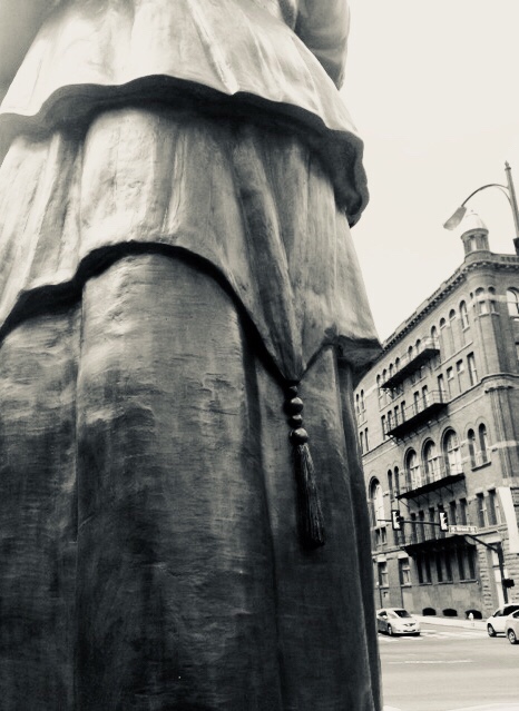The Boulevard is the main thoroughfare through my small city in Virginia. It’s a four-lane route with restaurants and businesses flanking each side along with strip malls. I live a block off The Boulevard. At night I see the lights of the businesses and the red lights from my living room. In the early morning, it is quiet and I hear the trains flying by parallel to The Boulevard. In this piece, I explored different ways of making a log cabin block to give the feel of The Boulevard. My starting point was elongated log cabins, then playing with the width of the strips. I added a traditional log cabin block to represent my home on The Boulevard.